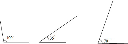 先从一点画一条射线,使量角器的中心和射线的端点重合,零刻度线和射线重合,在量角器100°、35°、70°的地方点一个点,然后以画出的射线的端点为端点,通过刚刚画的点,再画一条射线,这两条射线所夹的角就是我们所要画的角.