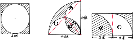分析:(1)阴影部分的面积=正方形的面积-圆的面积,利用正方形和圆的面积公式即可求解;