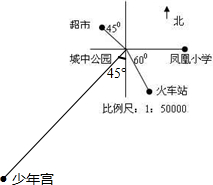 (3)少年宫在城中公园南偏450方向2000米处,先算出少年宫的图上距离,再在图中表示出少年宫的位置.