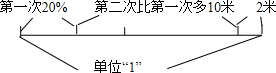一根绳,第一次用去20%,比第二次少用10米,这时还剩2米.这根绳原来长多少米?