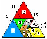设14、15的边长为a,bx表示各三角形边长,b15=b14=a,b13=a+1.3,b11=2a+1.3,b9=b10=3a+1.3,b7=3a+2.6,b6=4a+1.3,b4=4a+3.9=5a+1.3,