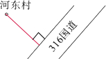 河东村在316国道的西侧,为了方便村民,村里决定修一条路通往316国道,怎样走路线最近?请你画一画,并说明理由.