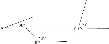 用下面的点做角的顶点,画三个不同的角.(20°,125°,75°)