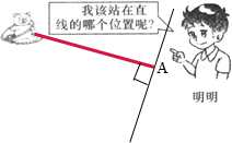 分析:根据垂直线段的性质:从直线外一点向已知直线画垂直线段和斜线,垂线段最短.把小熊玩具看作一个点,由点向直线画垂直线段,则小明站在垂足处即可.
