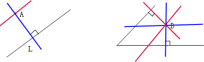 过A点作直线L的垂线和平行线,过B点分别作已知角的两条边的垂线和平行线.