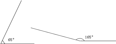分别画出一个65度和165度的角.