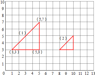 (1)在左面方格图(每个方格的边长表示1cm)中画一个直角三角形,其中两个锐角的顶点分别确定在(5,7)和(1,3)的位置上,那么直角的顶点位置可以是(______,______).这个三角形的面积是______平方厘米.