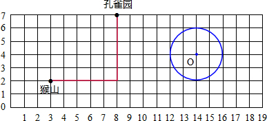 (1)根据数对表示位置的方法可得:猴山的位置是( 3,2),孔雀园的位置是(8,7).