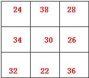 解答:解:幻和是:(22+24+26+…38)÷3=90;