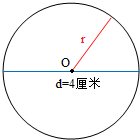 画一个直径4厘米的圆,标出圆心、半径、直径、并求出周长和面积.