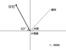 (2)学校在小明家西偏北60度约600米处,请画出学校位置.
