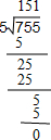 解答:解:755÷5=151,
