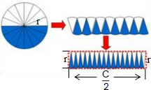 分析:将圆切割后拼成近似长方形,这个长方形的长就是圆周长的一半,宽就是圆的半径,因此,拼成的近似长方形的周长是圆周长加上两条半径,面积没有发生变化.