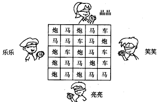 (谁能蒙着眼睛,把手中的棋放到棋盘上相应的位置,谁就赢.)![]()