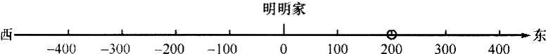 下面每格代表100米,规定明明家的位置为0处,我从家出发,先向西走200米,再向西走-400米。请你用“○”标出我现在的位置