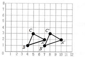 在右面的方格图中,画一个三角形,三个顶点的位置分别是(7,2)、(4,1),(5,3).然后将其向右平移3格,并画出新的三角形.