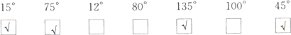 下面的角哪些能用一副三角尺画出来?试一试,如果能就在下面的“√”.