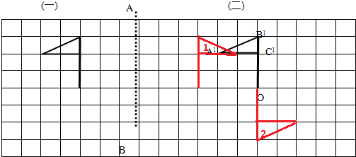 以“(一)”中AB为对称轴画出小旗子的对称图形,再把“(二)”中小旗子绕“o”点顺时针旋转180°.