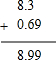 (2)8.3+0.69=8.99,
