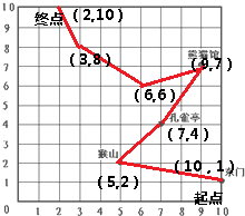 根据数对表示位置的方法,在图中标出这几个景点的位置如图所示,并画出他们行走的路线图如下: