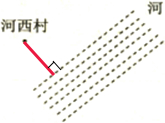 为了方便河西村村民的出行,要在河边修一个渡口,这个渡口修在哪里距河西村最近?请你为他们设计一条到河边的路线,并在图上画出来.