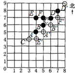 请你根据所给的信息,在棋盘上画出黑子和白子所在的位置.
