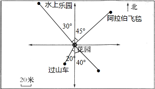 (1)水上乐园在花园的北偏西30°方向的l00米处.