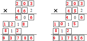 .分析:根据第一次乘得的积是三位数,则上面因数的最高位最大是4,又因为第一次乘得的积的十位数字是0,可推算出上面的因数的十位数字是0,所以上面因数的个位数字最大是4,以此为突破口再根据其他特点推出其他的数字.