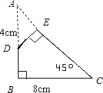 分析:根据题意,可延长BD、CE交于点A,得到三角形ABC,∠B=90°,∠C=45°,所以∠A=45°,则三角形ABC为等腰直角三角形,BC=BA=8厘米,在三角形ADE中,∠AED=90°,∠A=45°,所以∠ADE=45°,三角形ADE为等腰直角三角形,则AE=DE=4厘米,题干中四边形的面积等于三角形ABC的面积减去三角形ADE的面积,根据三角形的面积公式列式解答即可得到答案.