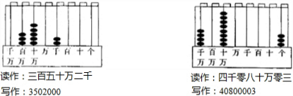 故答案为:三百五十万二千,小508000,n千零八十万零三,4080000小.
