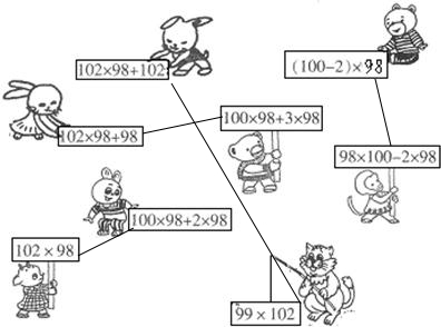 (2)102×98+98可以用乘法分配律的逆运算,同时提取98.