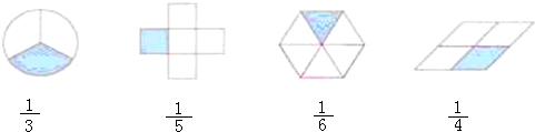 点评:本题主要是考查分数的意义及写法,属于基础知识.这在里都是把一个图形的面积看作单位“1”,平均分成若干份,表示其中的1份.