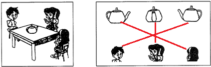他们三个分别看到了水壶的哪一面?请你连一连.