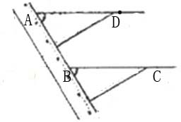 (2)作图过程如下所示,使用直尺和三角板,用平移的方法画出过点D的BC的平行线,利用三角板的直角边画出过点D的AB的垂线,并标上直角符号.