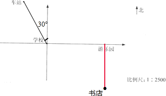 (2)书店在游乐园的正南方50米处,图上距离是______厘米,画出书店到游乐园的路线,用点标出书店的位置.