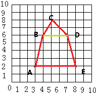 (1)根据数对表示位置的方法,在平面图中标出点A、B、C、D、E,并依次连接起来得出一个封闭的不规则图形如图所示;