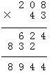 点评:考查了整数乘除法的笔算,根据各自的计算方法进行计算.