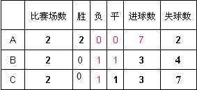 解答:解:比赛结果是A队2胜;A胜B,A胜C;B队、C队都是1负1平.