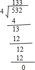532÷4=133