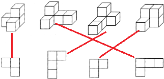 把从上面看的结果,用线连一连.