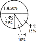 分析:分别求出小李,小赵,小邓,小何的得票占总数的百分之几,然后根据和这些百分数相符的图形即可.
