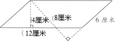 小马测量一个平行四边形的底和高,但他只记住了一个较短的底边是6厘米,其余几个数据弄混了,请你在图中标出相应的数据(A.8厘米B.12厘米C.4厘米)