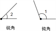 画一个钝角,标为∠1;画一个锐角,标为∠2.