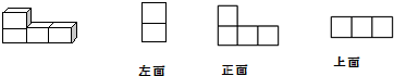 此物体从左面观察,看到的是两层,一层一个正方形;正面看到是两层图形,下层有桑正方形,上层有一个正方形靠左;从上面看到的图形是一排有三个正方形;如下图所示,因此得解.