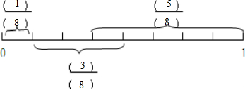 分析:把0~1平均分成8份,根据分数的意义,可知其中的1份用分数表示为