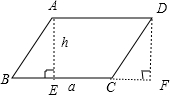 BC=EF,长方形的高与正方形的高相等=h,长方形的面积=长×宽,所以平行四边形的面积=底×高,S=ah.