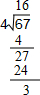 点评:此题考查用竖式计算整数除法,按照计算法则进行计算即可,要注意:在计算时,每求出一位商,余数一定要比除数小.