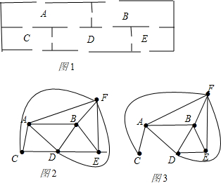 解答:解:(1)不能不重复地走一次穿过每扇门.