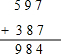 (1)597+387=984