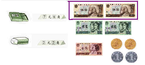 买下面的文具,把你用来付款的钱圈起来.